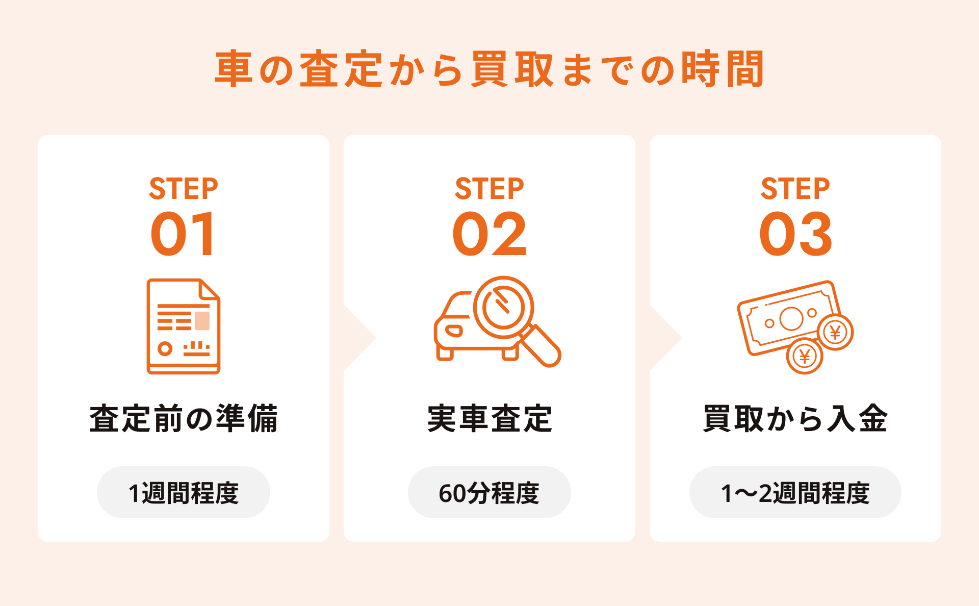 ここでは、査定依頼から入金完了までにかかる一般的な時間と、各ステップで押さえておきたいポイントを解説します。