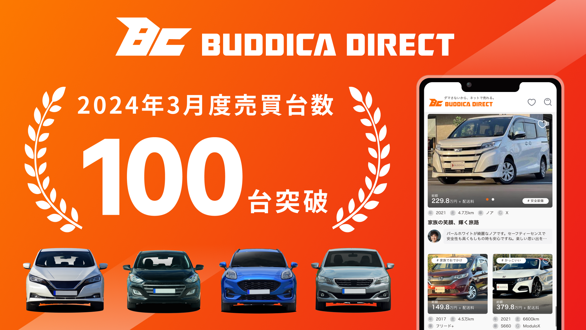 WebやLINEのやり取りだけで中古車販売を全国規模で展開するバディカダイレクト株式会社(本社:東京都渋谷区 / 代表取締役社長:中野 優作)は、2024年1月24日の新会社設立以後わずか2か月で月間100台を突破し、115台の売買を達成しました。これは当初の予定の約2倍を超える達成率です。