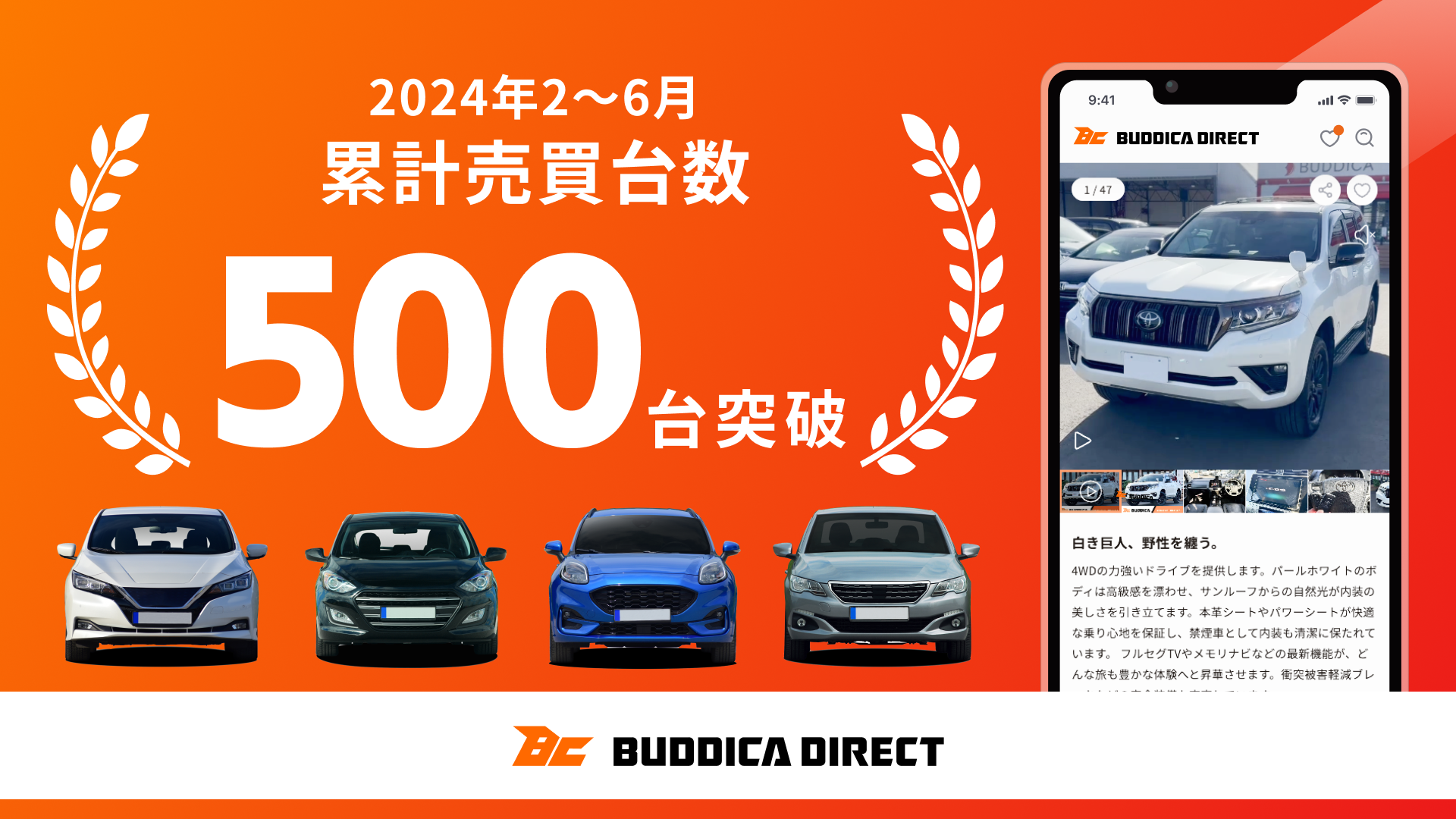 WebやLINEのやり取りだけで中古車販売を全国規模で展開するバディカダイレクト株式会社(URL: /本社:東京都渋谷区 / 代表取締役社長:中野 優作)は、1月24日の新会社設立以後わずか5か月で累計売買台数500台を突破しました事をご報告します。